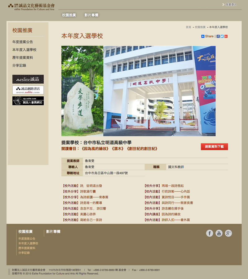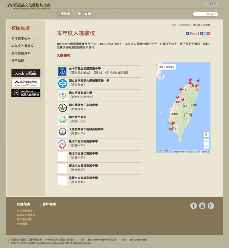 2015-06-04誠品文化藝術基金會「校品閱讀」網站製作。